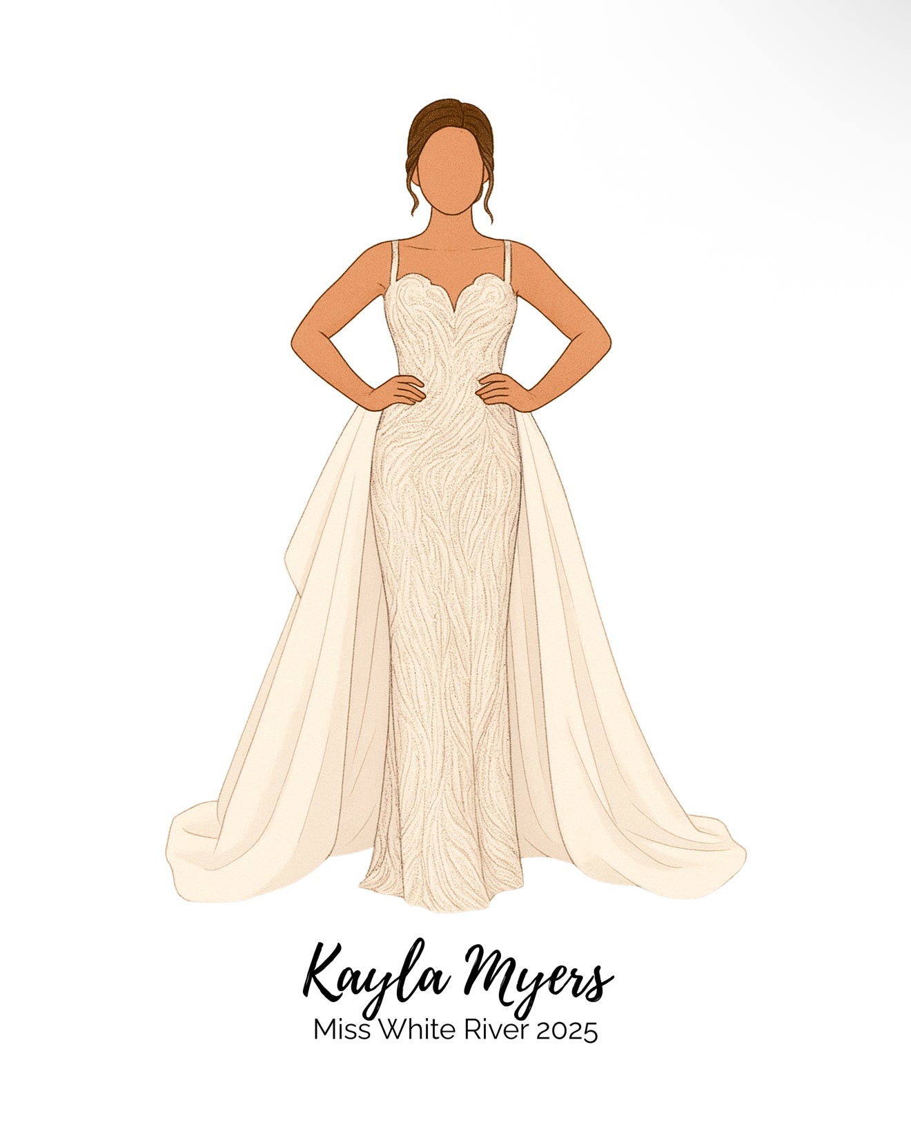 You will be to able to remember your title forever with this digital pageant drawing. It makes the perfect gift for every queen. Clear, full body photos will need to be sent to jmmartor95@gmail.com to complete the drawing.